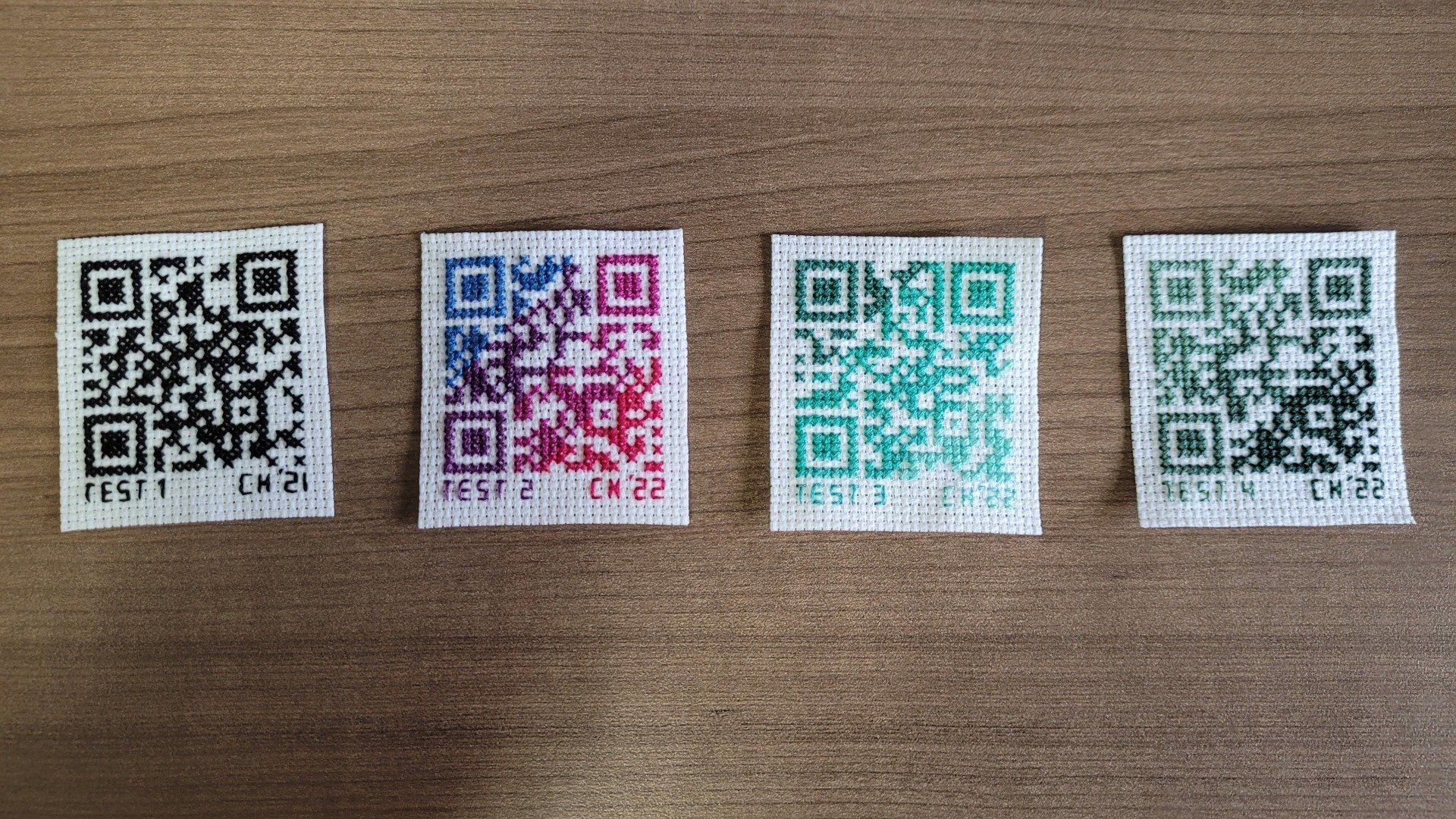 This wild idea came up at a Christmas party where a friend received an ornament with a hand stitched QR code and my brain absolutely broke! How on earth had I never thought to make a QR code cross stitch after years of designing off beat stitch patterns. I attacked this project head on, doing test after test to see how far I could push the concept design wise. always thinking about how we can incorporate this idea in our regularly scheduled cousin cross stitch projects I started my journey! I knew what my test link would be IMMEDIATLY. I did some testing using URL shorteners, and finally plugged my perfectly shortened URL into stitch fiddle . From there I opened the exported PDF in Illustrator and customized my grid system. I used colored fishing line to match in the fabric and got to it. In my pre-stitch testing I did find that using the URL shortener did reduce my grid width from 33 to 25, which made my brain feel a lot better. Depending on your fabric gauge, you can get a code down to about an inch. These were done on 14 and are just under an inch and a half square. So how did the testing turn out? Here is the breakdown: Test 1: Basic, nothing flashy, works! Test 2: Four vibrant color gradient on a diagonal, works! Test 3: Four color tone change gradient on a diagonal, more subtle, doesn't work! (too light?) Test 4: Three color tone change gradient on a diagonal, works! We have a lot of design options which is great! As I shared out my findings with crafters people started to mention the interesting commentary I was making adding in technology to an much more traditional form of art. Bringing it to life in a new age and making it an interactive experience. Not something I had thought about specifically, but the interactivity was what interested me the most. We plan to work QR codes into some of our new designs and I can't wait!